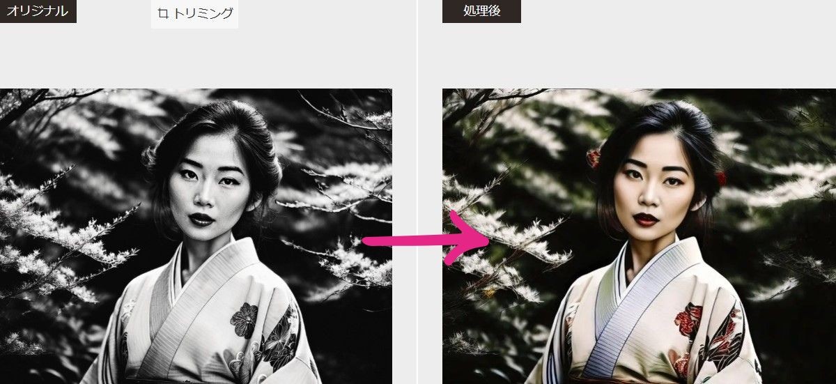 - スマホでもPCでもOK。数秒で見違える写真に。