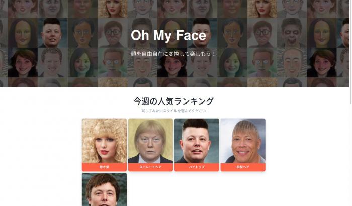 OhMyFaceは自由に顔を変換して遊ぶことのできるサイトです。