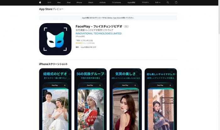 中国の企業が開発したアプリで、中国の伝統的な衣装を着用したビデオが用意されており、好きな画像と合成することで顔だけ変換した動画を作成することができます。