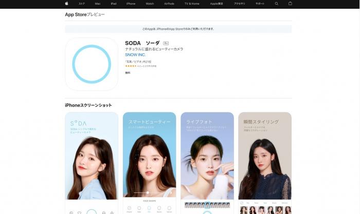 SODAはナチュラルな加工が可能なビューティーカメラです。