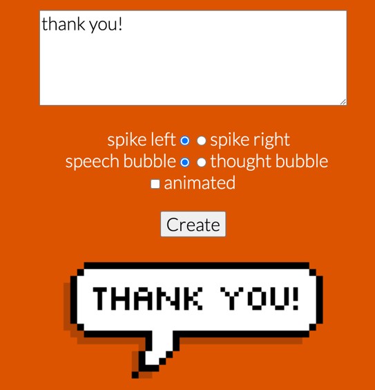 吹き出しの中の文字を打ち込んで、文字入りの吹き出しをデザインできるサイト。昔のゲームのようなピクセルデザインになります。日本語には対応していないので注意。
