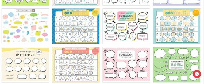 さまざまな吹き出し素材をパッケージで入手できるサイト。異なるサイズ感や形でありながら、同系統のデザインの吹き出しをまとめて使えるので、統一感を求める人にも使い勝手が良いサイトです。