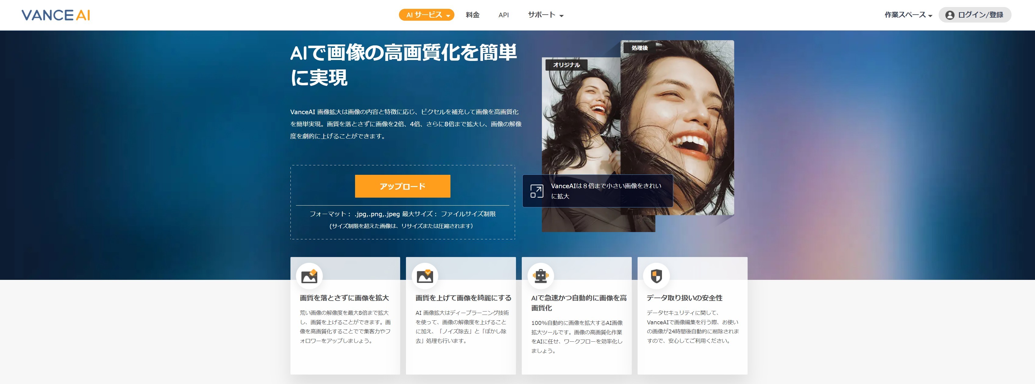 おすすめしたいのがVanceAI。とくに人物のディテール再現に優れており、自然で鮮明な仕上がりが期待できます。もちろん、PicWish や 剪切AC でも画質の最適化は可能です。