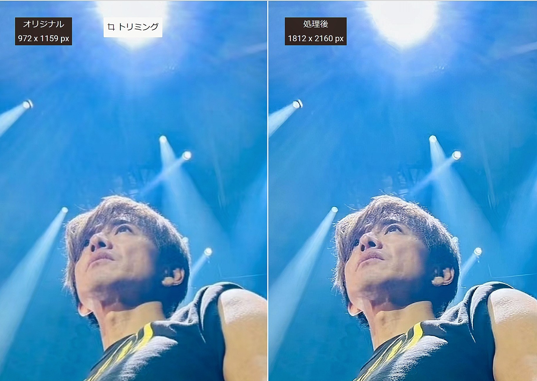 コンサート撮影では、高感度カメラや高性能スマホでも、激しく変化するステージライトや高速移動の影響で、ノイズやボケ、解像度不足が生じることがあります。伝統的な編集ソフトでは対応が難しいことも多いのに対し、VanceAI の画像拡大ツールは深層学習技術を用いて、ステージライトや人物の動き、ノイズを識別し、失われた細部を補完。強光で消えた顔の輪郭や LED の文字、遠景の服装の質感まで再現します。そこで、ライブ写真の画質を良くする方法を探す方に「VanceAI 画像拡大」を紹介します。