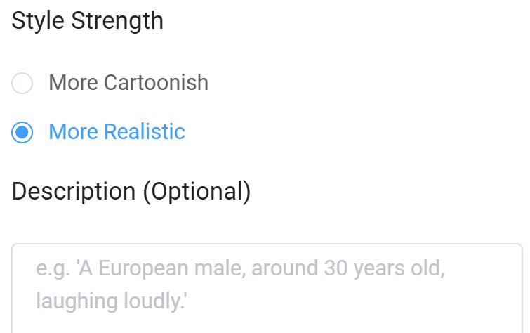Step 3: Give some specific information of your demands for your anime photo. For example the style strength and your description for your origin photo.
