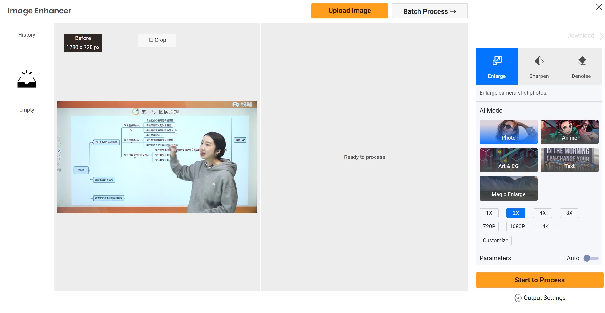 Step 2: Upload an image on VanceAI Enhancer Workspace and choose your AI models. Click on Start to Process to proceed ahead.