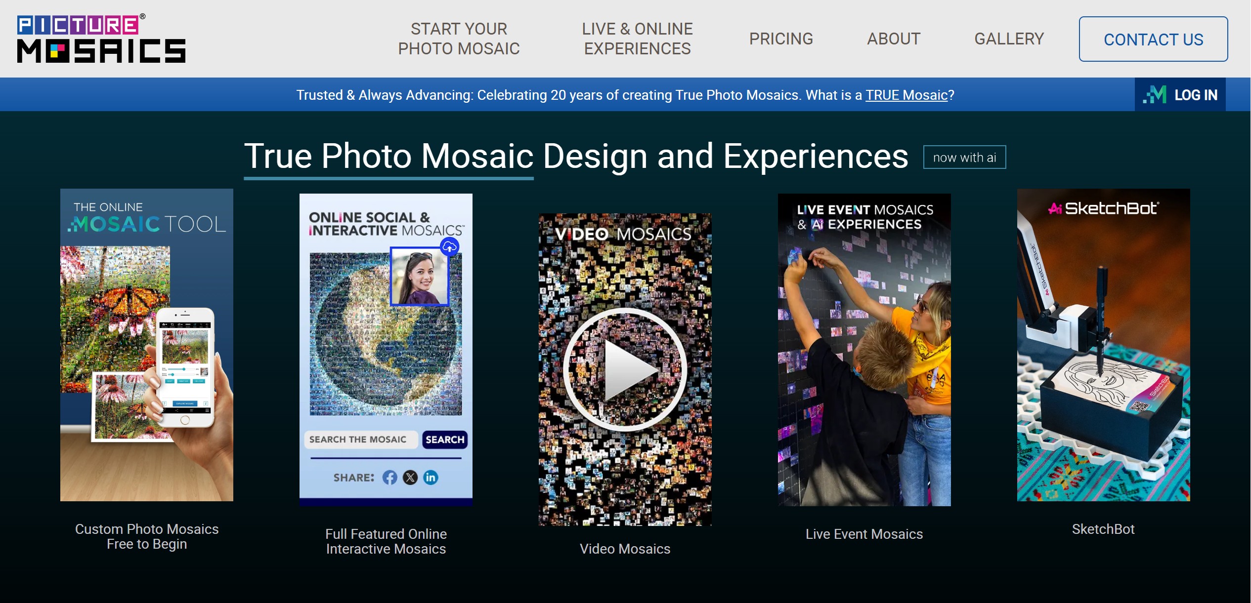 Picture Mosaics is an online free mosaic tool that would make creating a mosaic as easy as possible. You can easily create your photo and video mosaics using the most advanced mosaic technology. From personalized prints and videos to online mosaic campaigns, this is the tool to use for mosaic making.