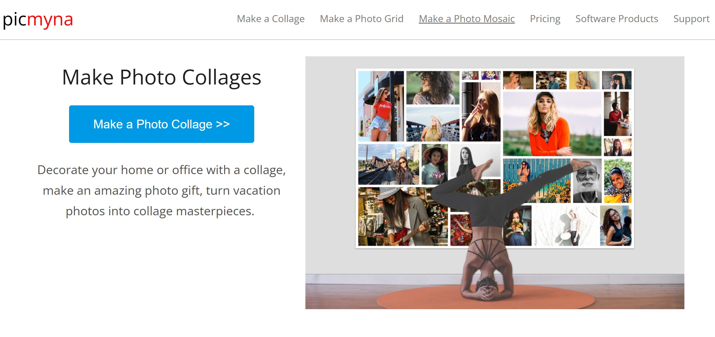 Picmyna is a great free mosaic maker option to use online. You don't need to download the software and install it on your system. Just browse the app and start using its mosaic filter. This is the best part of using an online Picmyna mosaic maker. The mosaic creator is very easy to use and the images are all watermarked. It also includes many other free features for making collages and picture grids.