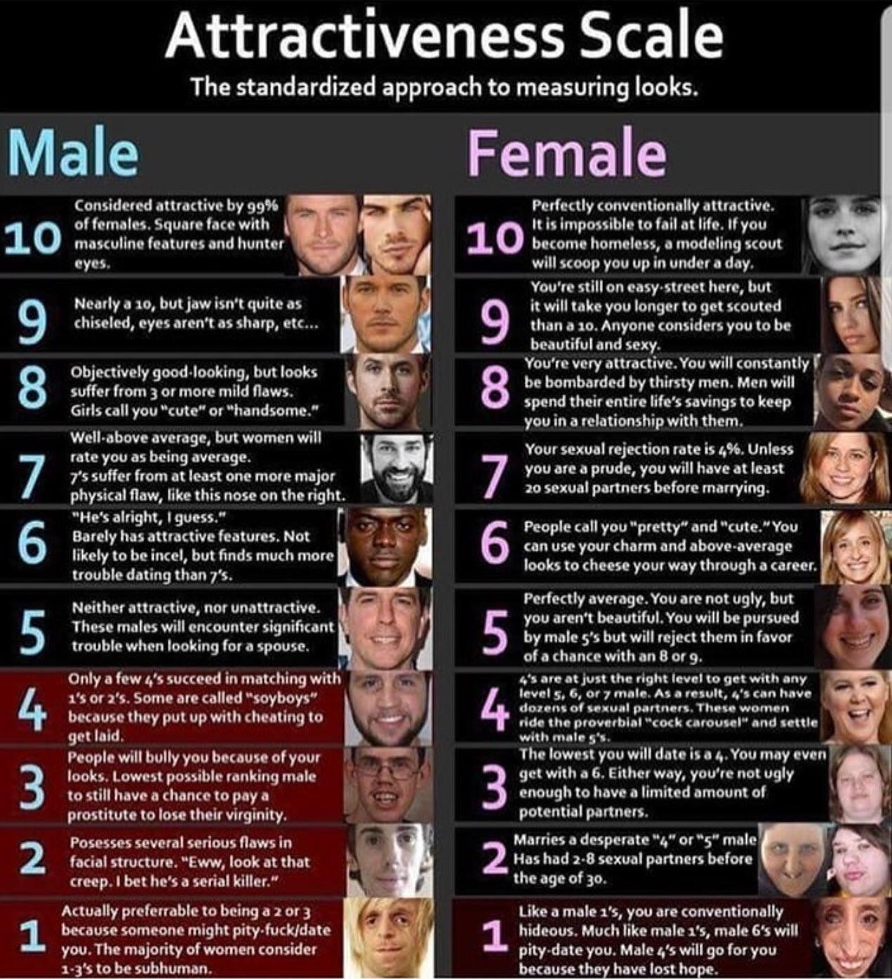 Here is the scale attached for your ease to help you get a better look at your attractiveness score.