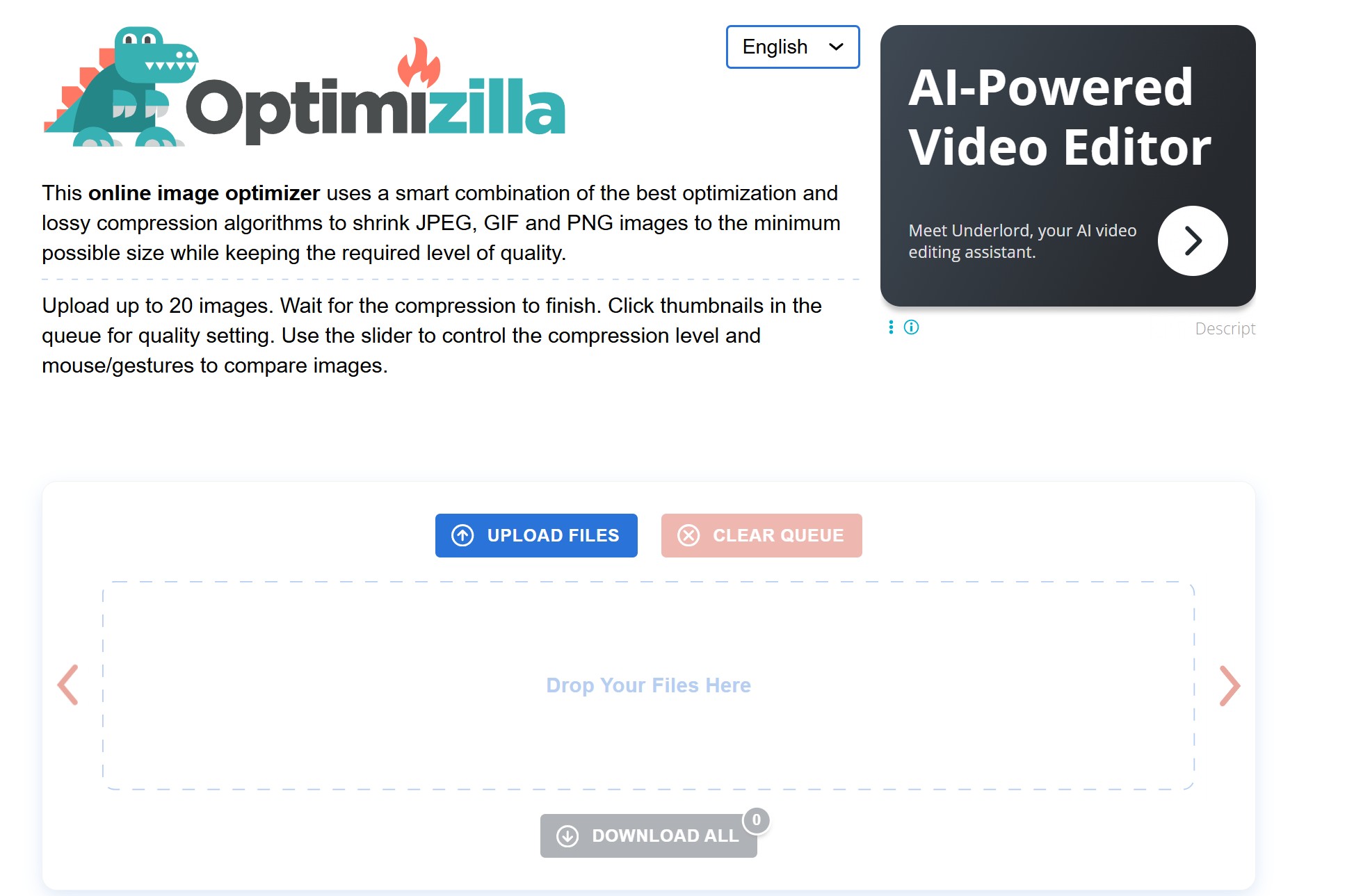 With Optimizilla, users can process multiple images simultaneously through its batch-processing feature. This streamlines the optimization workflow, saving time and effort. You can upload multiple images in various formats and download them in a compressed format, making it ideal for large image collections.